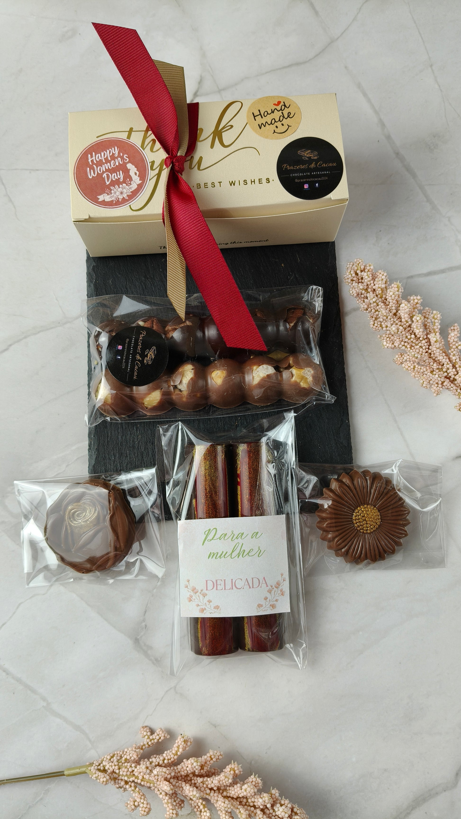 O Kit Mulher Essência reúne uma seleção especial de chocolates artesanais pensados para surpreender neste Dia da Mulher: